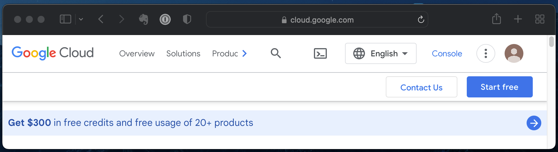 - Create a billing account enter your address and credit card. (On this page you should get a free trial offer and $300 in credits for the next 90 days.)
